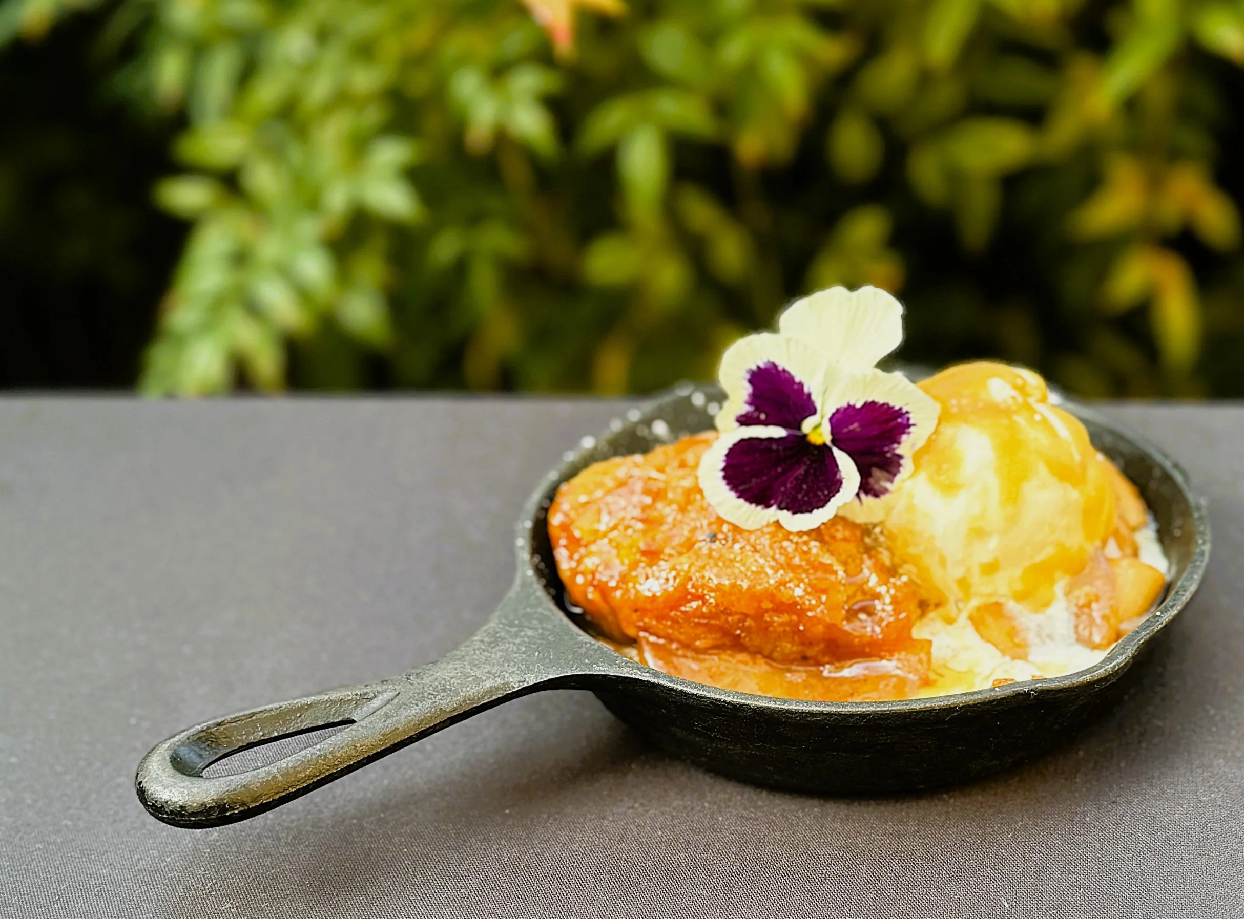 Pastry Chef Amy has done it again, Spiced Pink Lady Apples, Sweet Biscuit Top, Vanilla Bean Ice Cream, Butterscotch Sauce